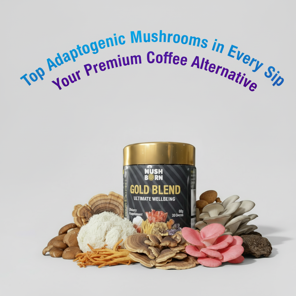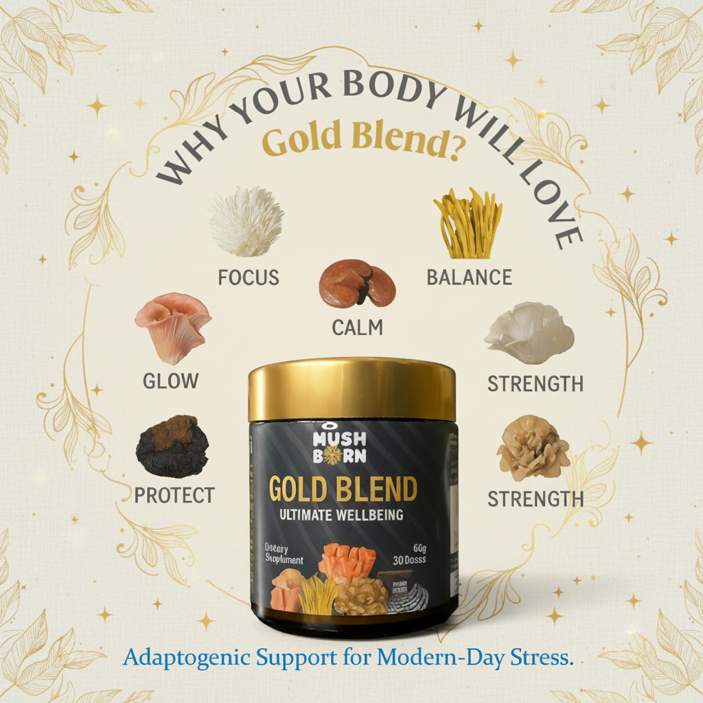 Gold Blend is a caffeine-free mushroom beverage made from well-known, powerful functional mushrooms, all without jitters or crashes.