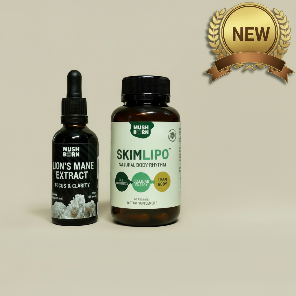 A simple morning routine designed to support your natural metabolic rhythm and help you feel more in tune with your body’s fullness and appetite signals. SkimLipo™ pairs with Lion’s Mane and Turkey Tail tinctures to create a clear, balanced start to the day — supporting gut balance, daily energy, and overall wellbeing.